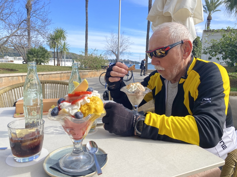 Heute sind wir knapp 80 km gefahren, haben Eis in Port de Lollenca gegessen und sowhl die etwa 40 km hin, wie auch die knapp 40 km wieder zurück, durchgefahren. - Der Trainingszustand wird besser ...!