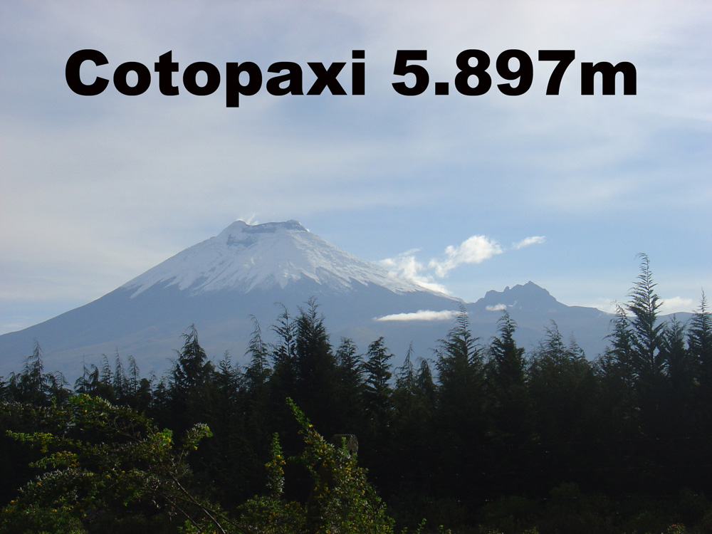 Hätte Helmut mich nicht nach dem höchsten aktiven Vulkan befragt, ich wüsste bis heute nicht, dass es den Cotopaxi (5.900m) in Ecuador gibt. Via Internet informiere ich mich, erfahre von Ralf in der Kantine weitere Details. Am 19. Mai 2003 richte ich eine erste Anfrage an eine Travel-Agentur in Ecuador. Schon am 20. Mai erhalte ich per eMail einen Tourenvorschlag, der mir sehr gut gefällt. Im Prinzip eine Trekkingtour, die vorwiegend der Akklimatisation dient und die schließlich die Besteigung des Cotopaxi als Höhepunkt bieten könnte. Vom 01. Feb. - 29. Feb. 2004 sind wir "on tour", trekken durch das Land, besteigen den Cotopaxi, fahren abenteuerlich Bahn, lernen Land und Leute kennen ... Lest mehr in unserem REISETAGEBUCH